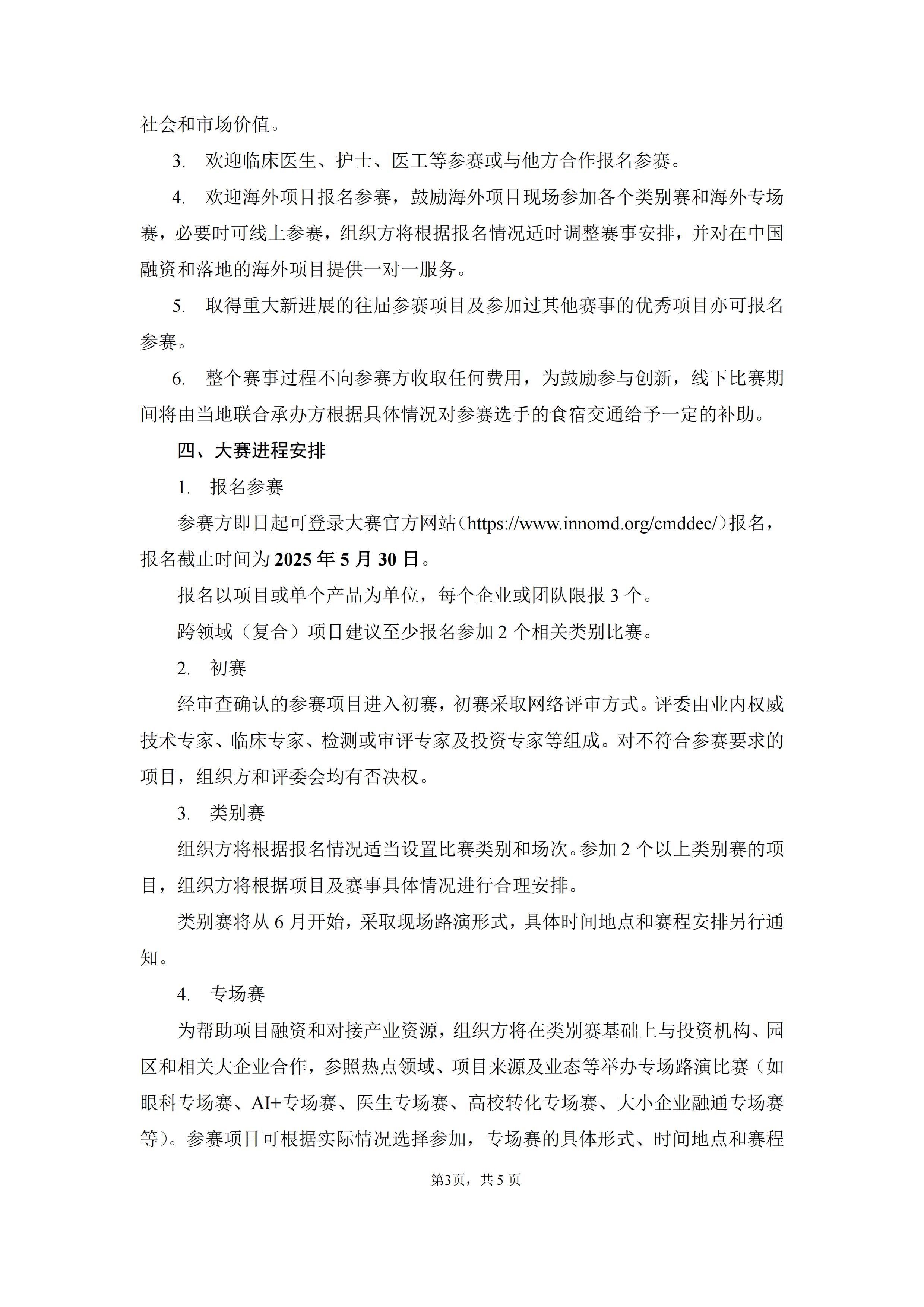 参赛方即日起可登录大赛官方网站(医疗器械创新网网://1001money.com/cmddec/)报名,报名截止时间为2025年5月30日。